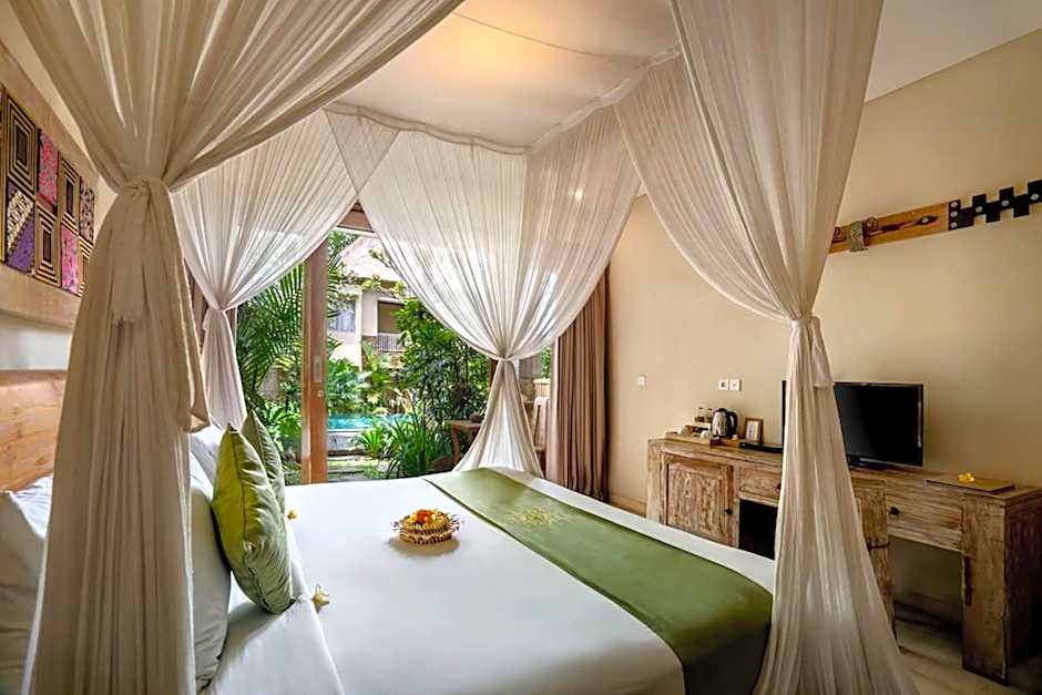 Featuring a balcony with garden view, this air-conditioned suite has a flat-screen TV, a refrigerator and an electric kettle. It is furnished with a four-poster bed, mosquito nets, a sofa and a dining table. Private bathroom comes with a bath, slippers and free toiletries. The room includes free WiFi ,Welcome drink upon arrival Seasonal tropical fruits upon arrival Complimentary coffee & tea amenities in the room , Complimentary mineral water in the room Complimentary daily make up & turndown service & Balinese Genuine Activity based on schedule
