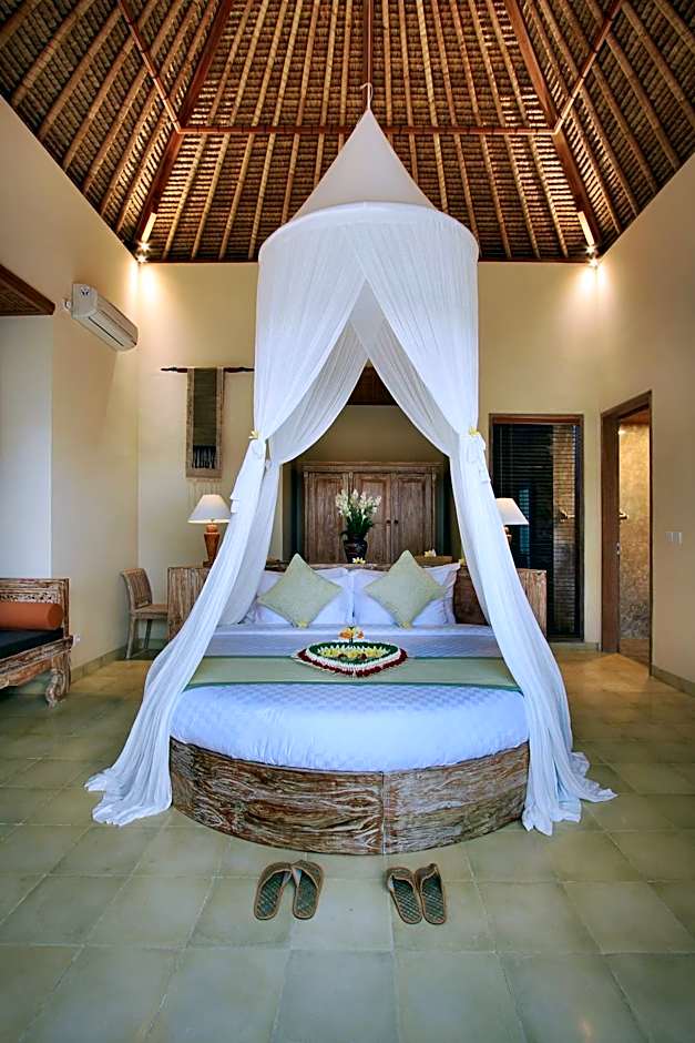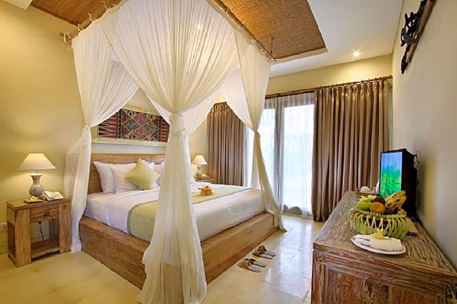 Featuring a balcony with garden view, this air-conditioned suite has a flat-screen TV, a refrigerator and an electric kettle. It is furnished with a four-poster bed, mosquito nets, a sofa and a dining table. Private bathroom comes with a bath, slippers and free toiletries. The room includes free WiFi ,Welcome drink upon arrival Seasonal tropical fruits upon arrival Complimentary coffee & tea amenities in the room , Complimentary mineral water in the room Complimentary daily make up & turndown service & Balinese Genuine Activity based on schedule